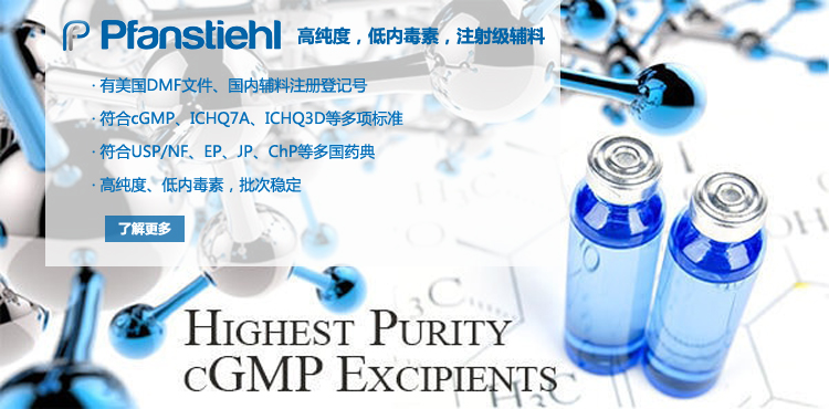 “熱烈祝賀Pfanstiehl的注射級甘氨酸Glycine(G-140)喜獲CDE登記號F20250000403, 這是Pfanstiehl產品獲得的第18個CDE登記號!”甘氨酸在醫藥輔料制劑中應用廣泛,, 可作為緩沖劑,增溶劑,穩定劑等,具有諸多優勢。Pfanstiehl秉承一貫高品質理念,為滿足全球生物制藥行業對于高品質甘氨酸的需求,隆重推出的注射級甘氨酸Glycine (G-140), 具有超高純度,超低內毒素,超低金屬殘留的特點,單獨檢測29種金屬離子,并且新增DNA,RNA,DNA酶,RNA酶和脂肪酶,亞硝酸鹽等多項質量指標的檢測,符合多國藥典規定(USP, EP, BP, JPE, ChP),可用于生物治療性藥物和疫苗的生產。產品信息:· 產品名稱:Glycine, High Purity, Low Endotoxin, Low Metals, USP, EP, BP, JPE, ChP (G-140)· 中文名稱:甘氨酸· 分子式:C2H5NO2· 分子量:75.07 g / mol· CAS號:56-40-6· 產品貨號:G-140產品特點: · 超高純度,超低內毒素,超低微生物含量,超低金屬雜質殘留· 質量指標新增DNA,RNA,DNA酶,RNA酶,脂肪酶和亞硝酸鹽檢測· 符合多國藥典:USP, EP, BP, JPE, ChP· 符合ICH Q3D標準· 符合GMP標準· 已獲DMF和CDE登記號 產品應用:· 緩沖劑· 穩定劑· 增溶劑如果您對Pfanstiehl注射級別Glycine G-140感興趣,歡迎聯系Pfanstiehl 中國區代理商北京西美杰科技有限公司獲得如下詳細的產品概況說明文件和測試樣品。Pfanstiehl Inc.最新產品系列如下,歡迎聯系北京西美杰科技有限公司獲取100g裝免費樣品。北京西美杰科技有限公司為Pfanstiehl中國代理,為客戶提供完善的技術支持與售后服務。歡迎撥打西美杰客服電話400-050-4006或者登陸網站www_xmjsci_com.cznk91.com了解更多信息。 更多>